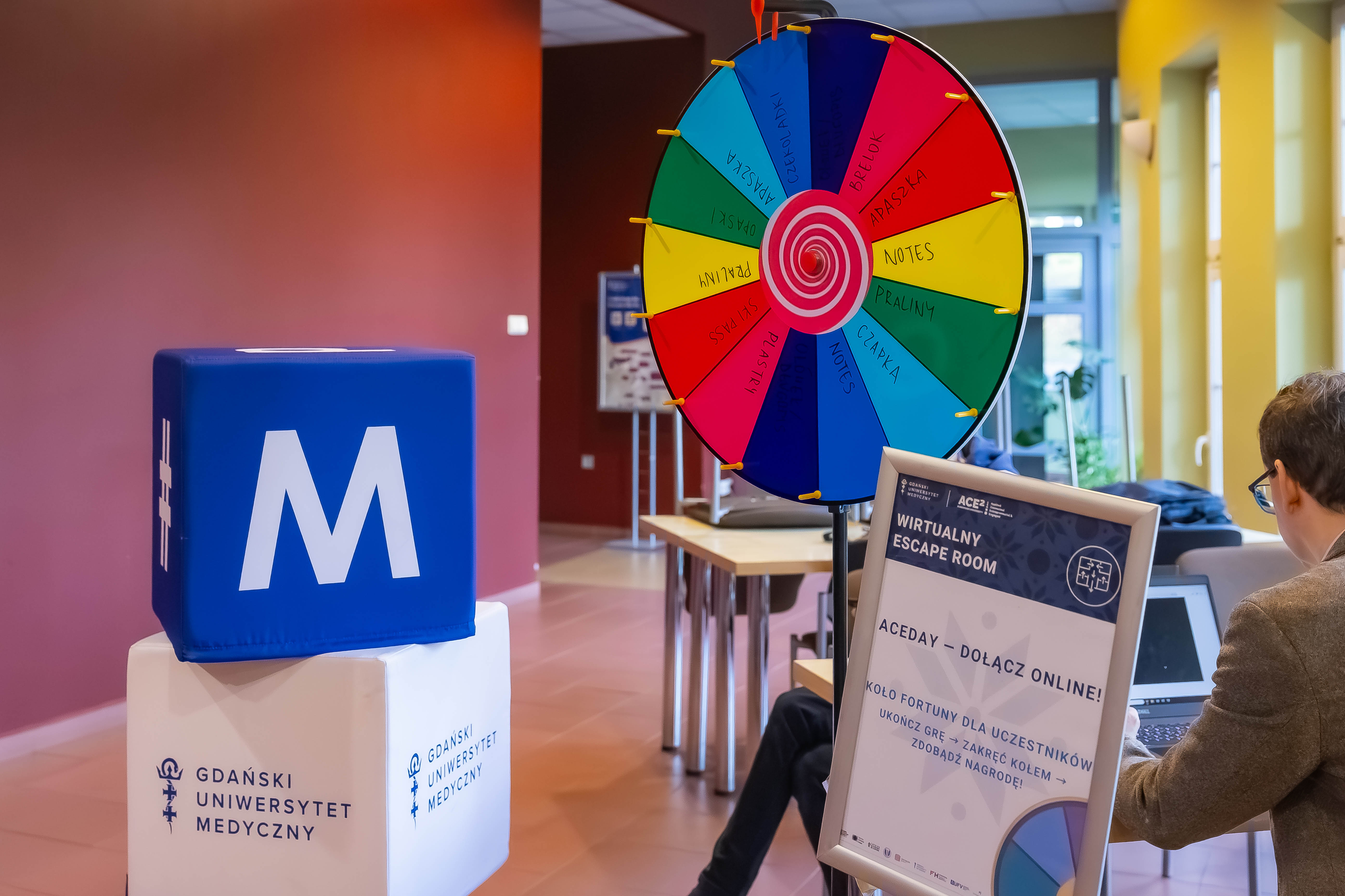 ACE DAY w GUMed był częścią ogólnoeuropejskiej celebracji, która dzięki elementom online pozwoliła uczestnikom włączać się w wydarzenia odbywające się równolegle w innych uczelniach Sojuszu. W programie znalazły się m.in.: Virtual Coffee Session i Virtual Escape Room, który spotkał się z dużym zainteresowaniem zarówno studentów, jak i pracowników. W przestrzeni AGN udostępniono laptopy umożliwiające udział w escape roomie, a dla osób, które ukończyły wyzwanie, przygotowano koło fortuny z drobnymi nagrodami. Ta część wydarzenia stworzyła przyjazną przestrzeń do rozmów, wymiany doświadczeń oraz poznawania działań Sojuszu.