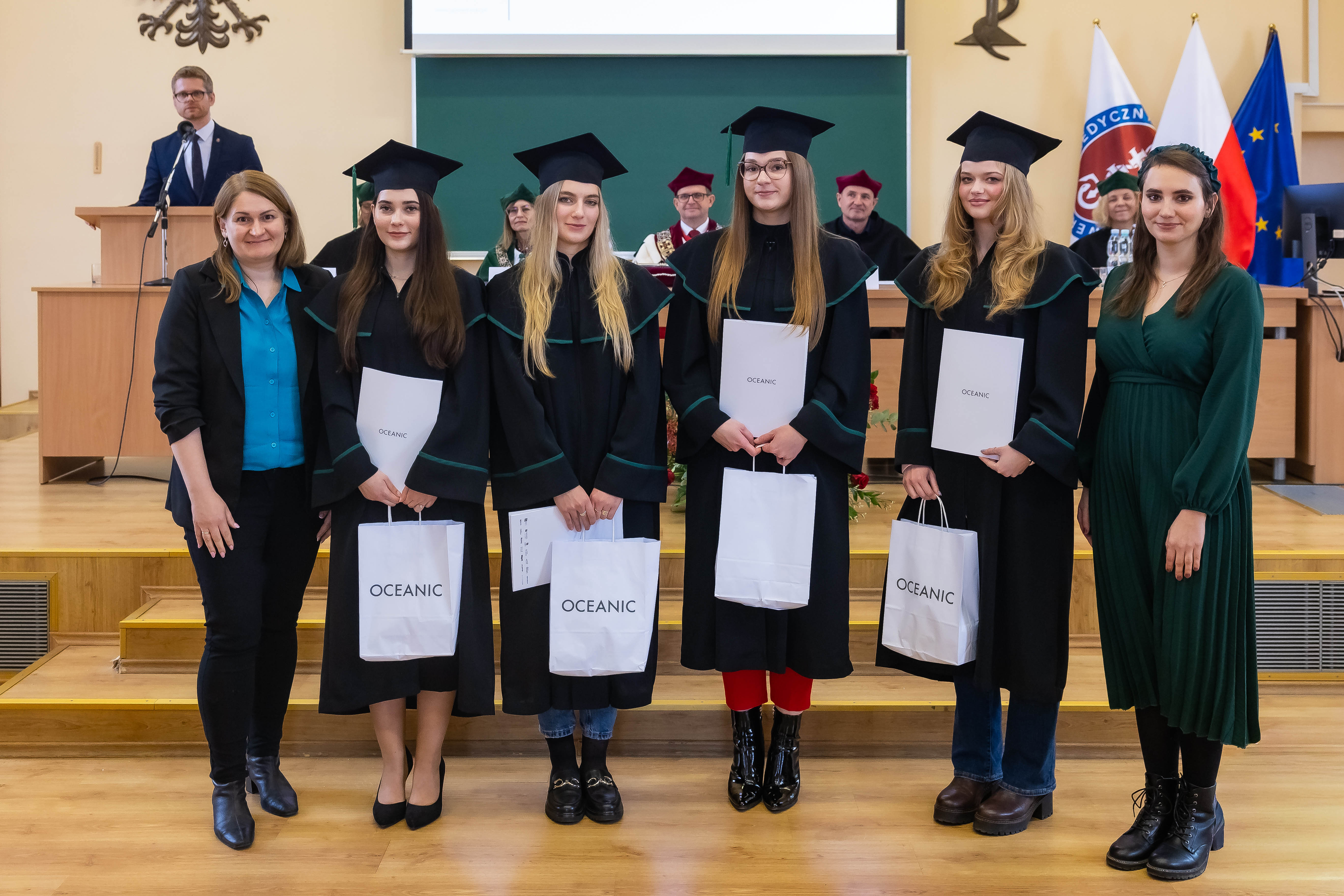 Dodatkowe nagrody ufundowała firma OCEANIC Sp. z o.o. dla absolwentów, którzy realizowali prace magisterskie właśnie w tym przedsiębiorstwie. Nagrody z rąk dyrektor HR kierownik ds. regulacji i wymagań prawnych, działu badań i rozwoju mgr Anny Dudzińskiej i mgr Karoliny Koczarskiej, starszego technologa z zespołu formulacji, działu badań i rozwoju firmy Oceanic Sp. z o.o. otrzymały: Ewa Hautz, Zuzanna Korendo, Aleksandra Trędowska, Oliwia Weber, Agata Zawadzińska, Emilia Żurawska.