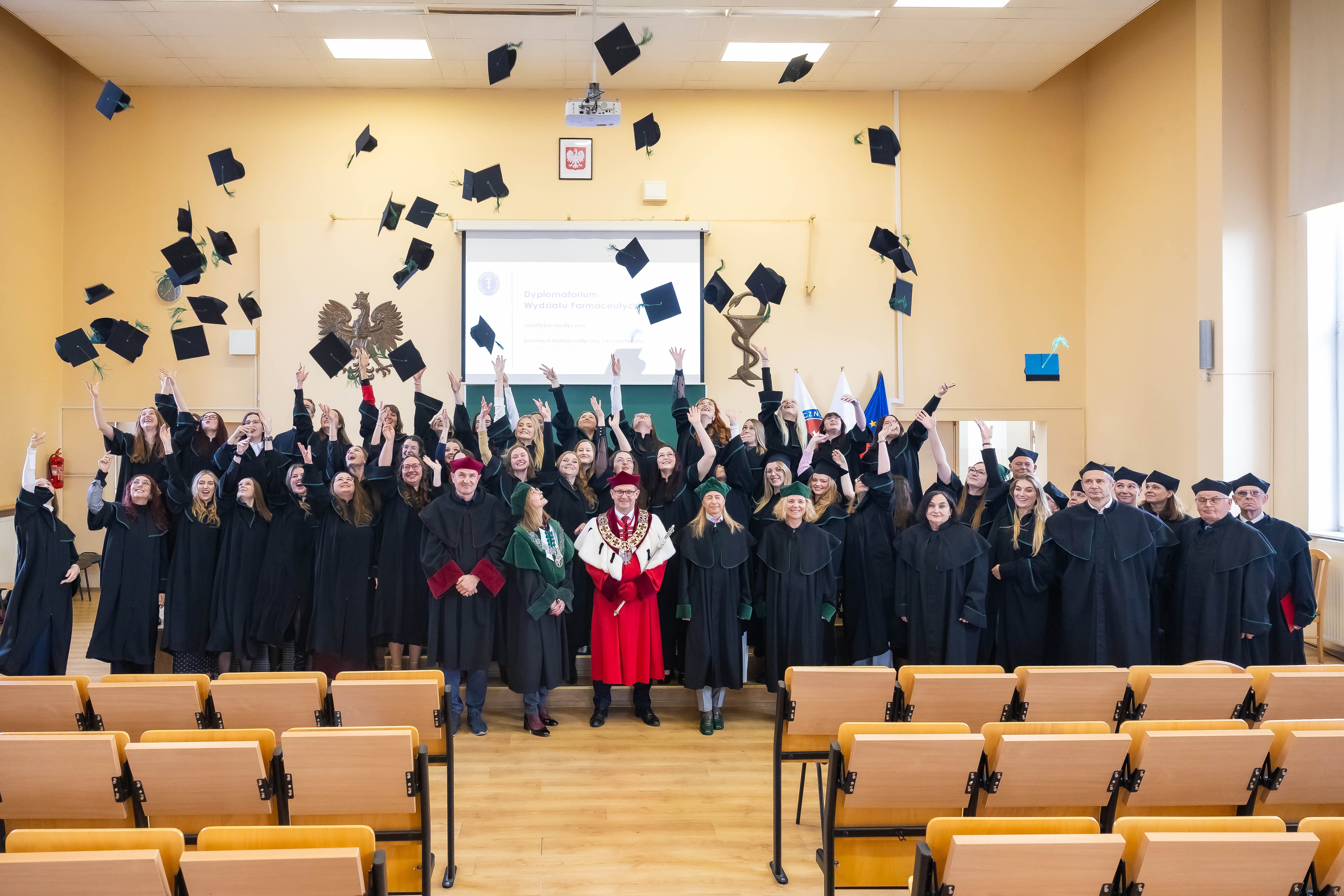 Za nami wręczenie dyplomów ukończenia studiów absolwentom kierunku analityka medyczna rocznika 2020-2025 oraz przemysł farmaceutyczny i kosmetyczny rocznika 2023-2025. W Auditorium Maximum Wydziału Farmaceutycznego nowi absolwenci GUMed symbolicznie zakończyli jeden z etapów w swoim życiu.