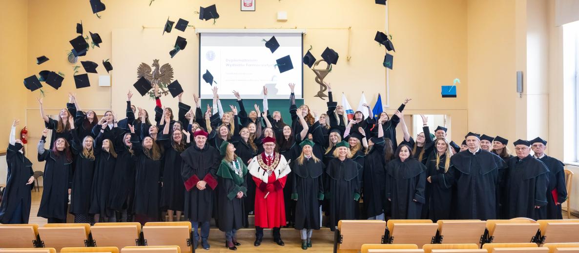 Jako pierwsi złożyli przyrzeczenie i odebrali dyplomy z rąk rektora prof. Michała Markuszewskiego i dziekan prof. Magdaleny Prokopowicz absolwenci kierunku analityka medyczna. Dyplomy z wyróżnieniem otrzymały: Roksana Knapczyk, Natalia Meler, Agata Milewczyk, Agata Pasierb, Anna Włodarczyk oraz Zuzanna Rudaś. Wyróżniającym się absolwentkom wręczono listy gratulacyjne i nagrody książkowe. Za wyniki w nauce nagrodzono: Roksanę Knapczyk – laureatkę nagrody Primus Inter Pares, mgr Zuzannę Rudaś, mgr Agatę Pasierb, mgr Annę Włodarczyk.