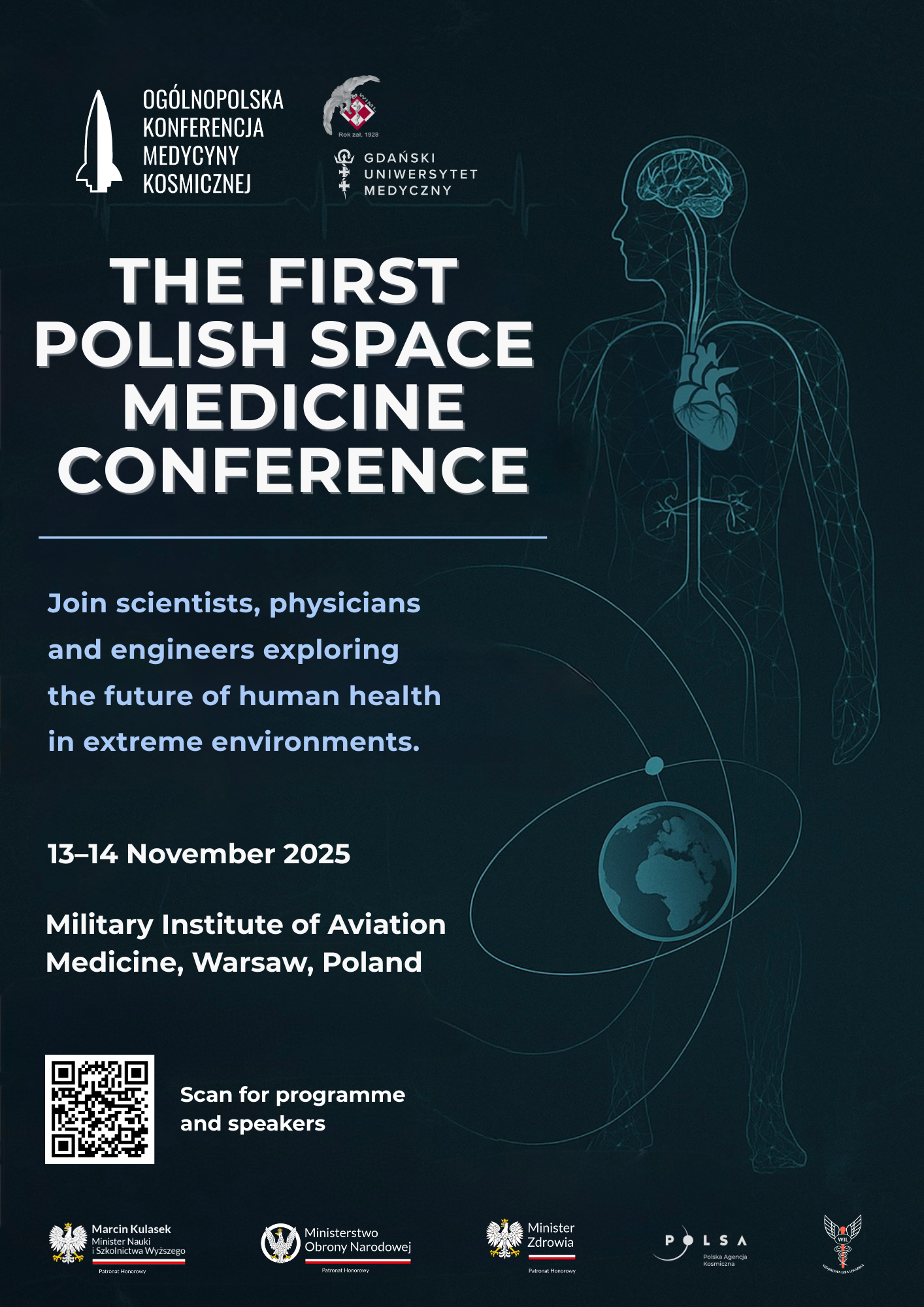 Pierwsza konferencja Medycyny Kosmicznej w Polsce odbędzie się w dniach 13-14.11.2025 r. w Warszawie. Organizatorami są dwie instytucje: Gdański Uniwersytet Medyczny i Wojskowy Instytut Medycyny Lotniczej.